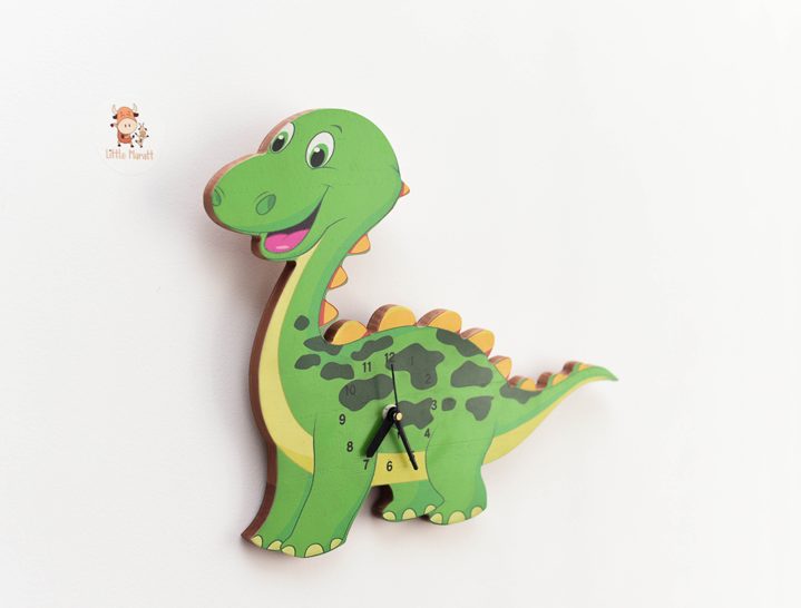 This Unique Fun Green Dinosaur Clock would be a perfect addition to your Kids room. Our Friendly Dino adds a Fun element to their bedroom, helping your little once to keep track of time. This adorable clock is an absolute MUST have for your Tiny Dino Lover.