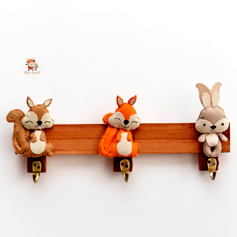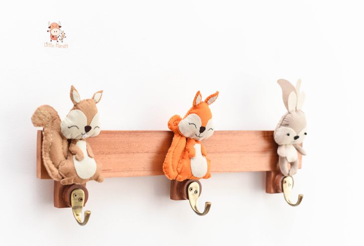Add our Mahogany Woodland Themed Hanger to your Kids room to take your little one on an adventure. Our Super cute Felt Bunnies and Squirrels make the perfect Bed time friends.